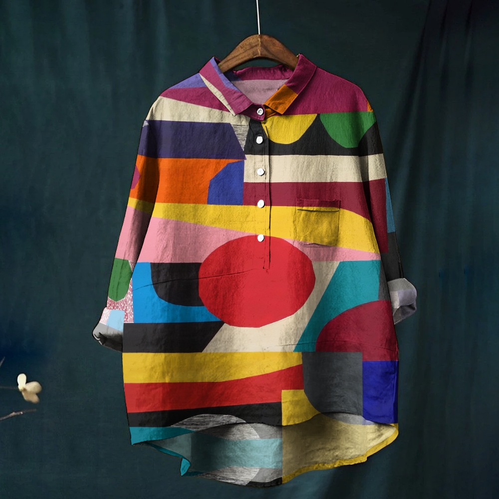Women's Geometric Color Blocking Printed Casual Shirt
