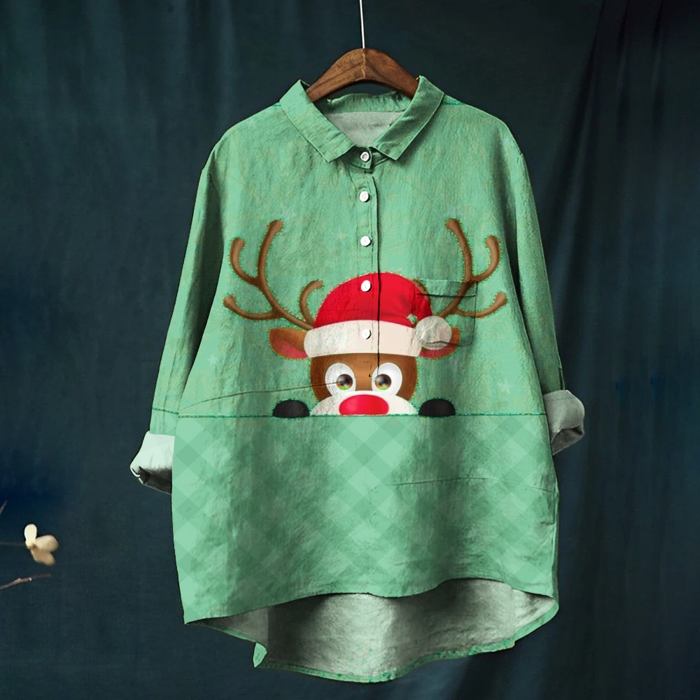 Women's Christmas Elk Printed Casual Shirt