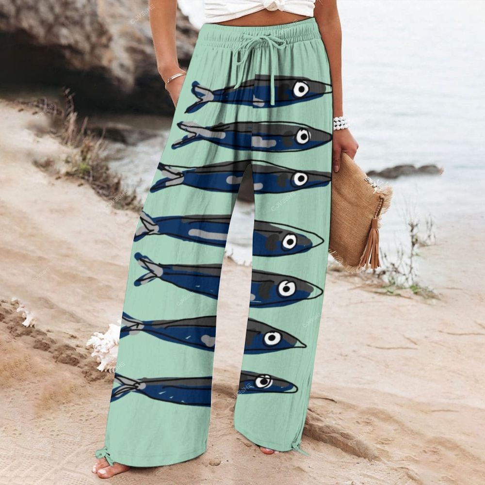 Women's Wide Leg Casual Sardines Printed Pants