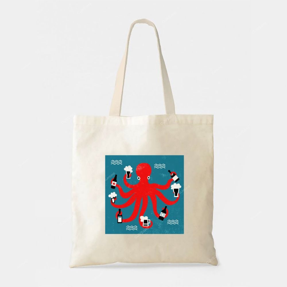 Octopus Beer Print Tote Bag