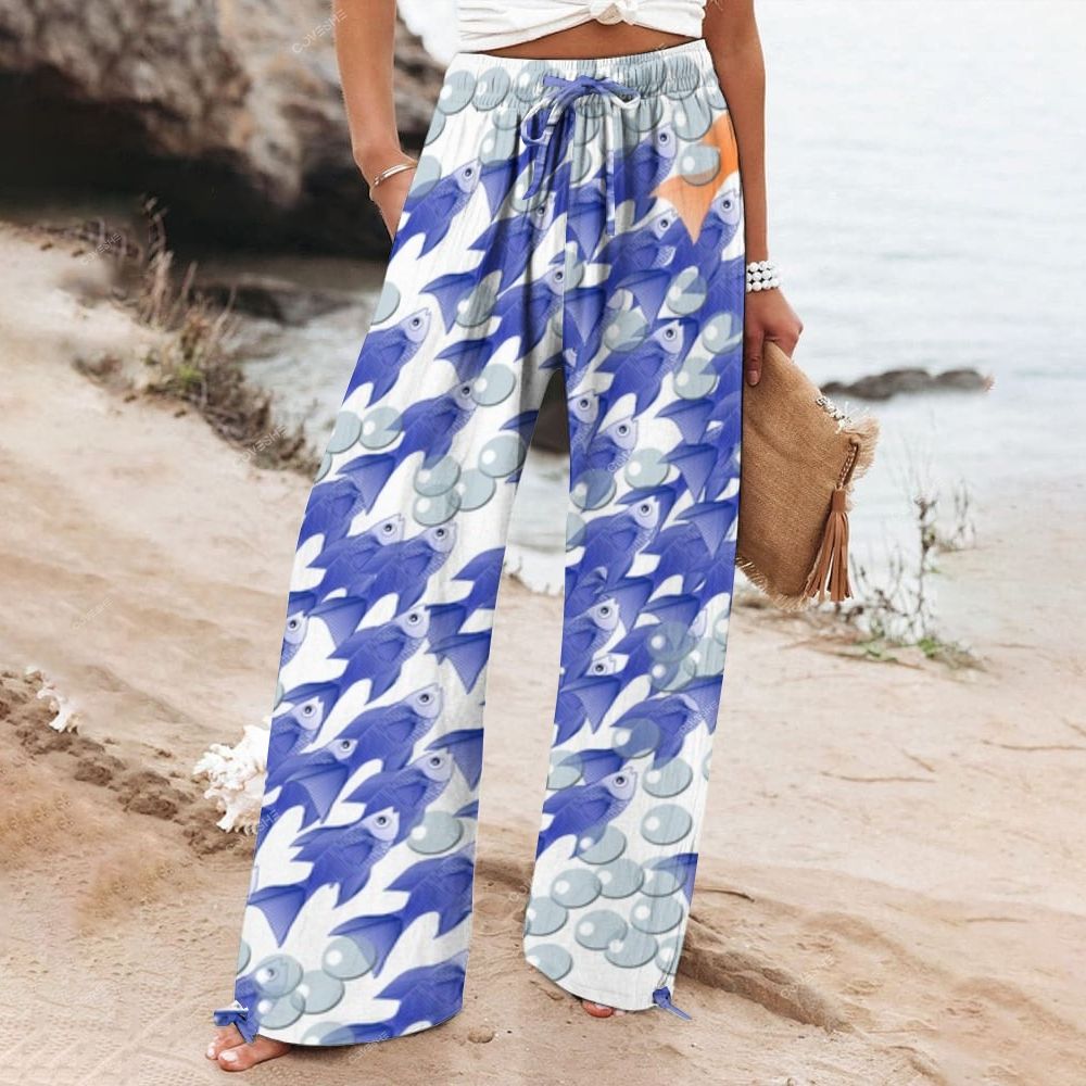 Women's Wide Leg Casual Bubble Fish Printed Pants