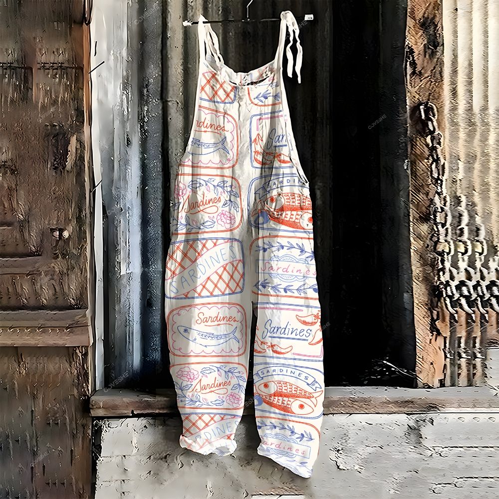 Women's Casual Artistic Sardines Printed Jumpsuit