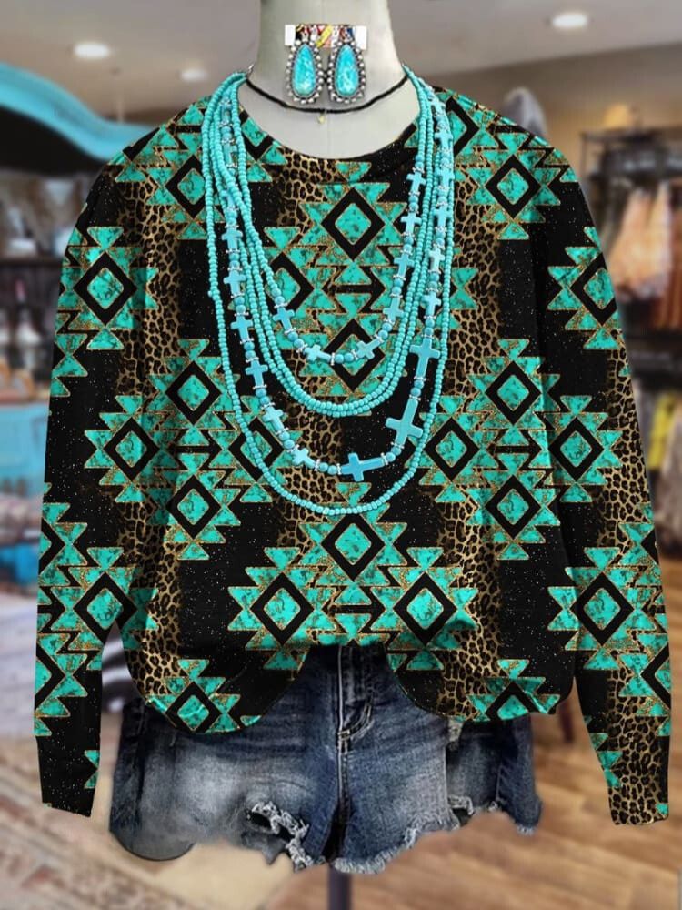Vintage West Print Casual Sweatshirt
