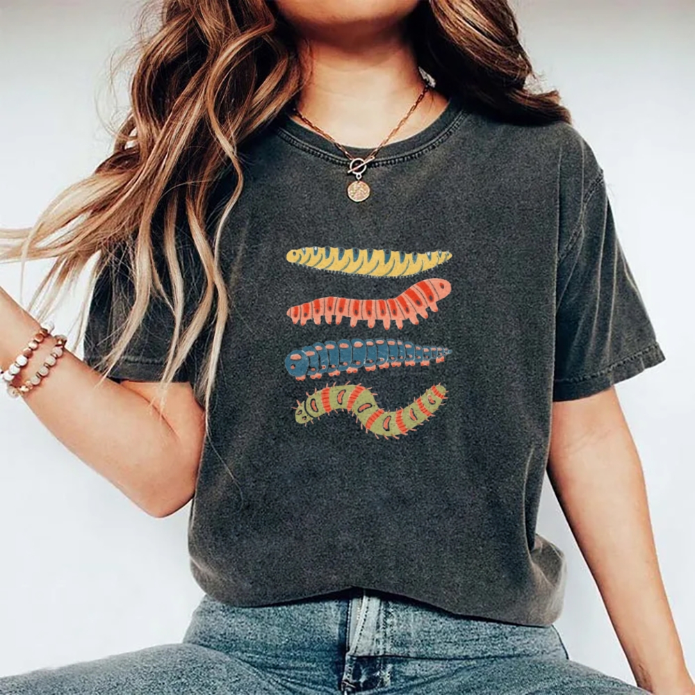 Unisex worm Printed Washed T-shirt