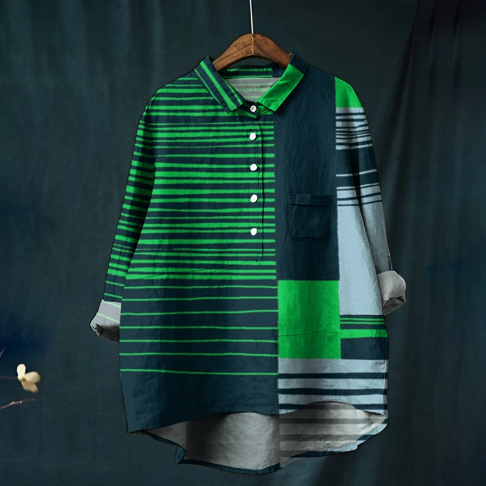Women's Vintage Colorblock Striped Art Print Casual V-neck Shirt