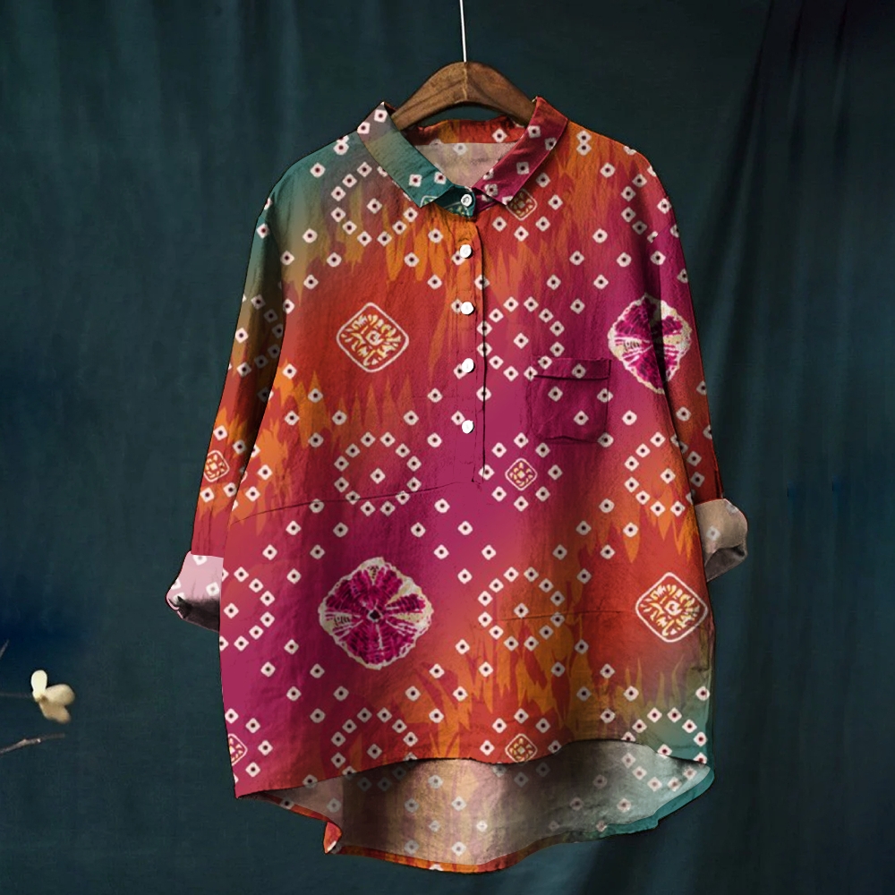 Women's Vintage Floral Art Print Casual 3/4 Sleeve Shirt