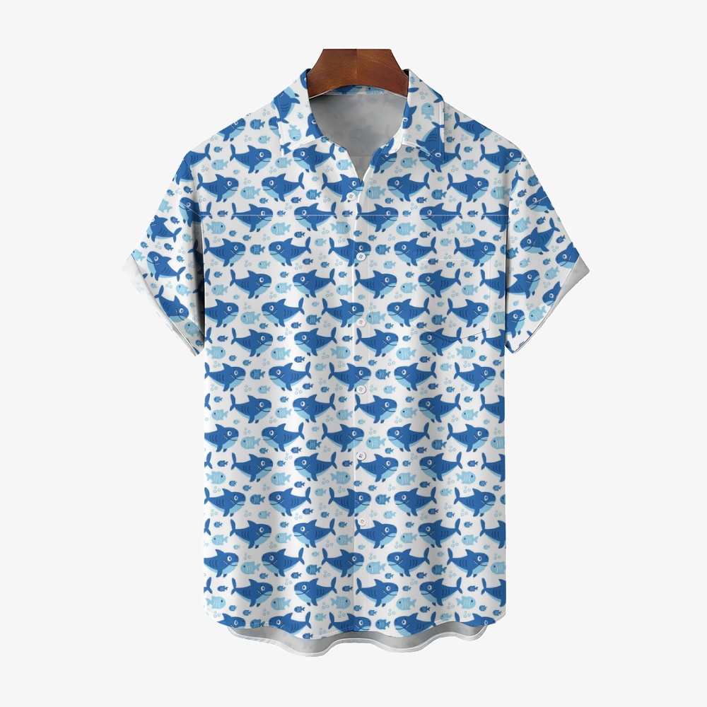 Men's Shark Print Hawaiian Casual Short Sleeve Shirt