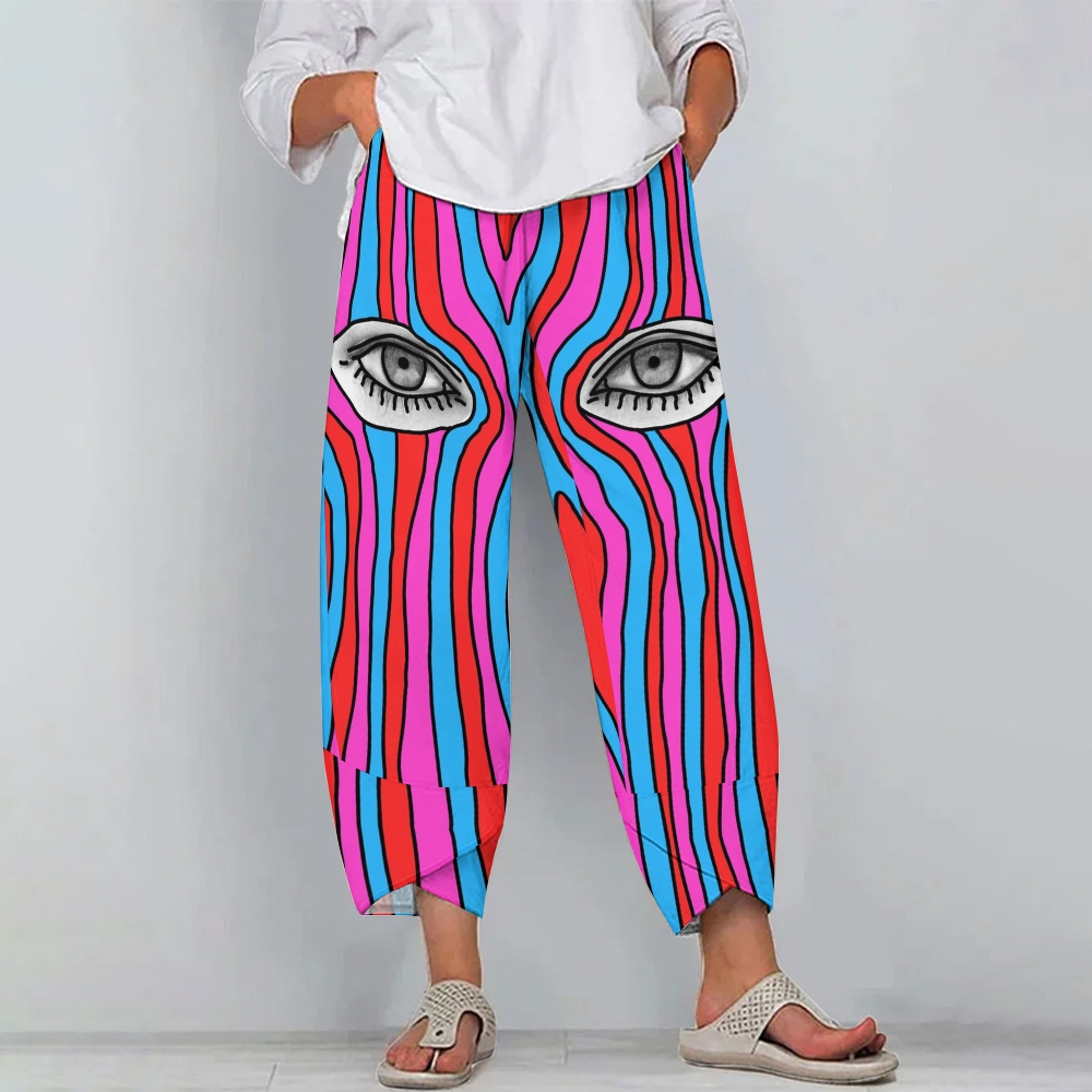 Women's Casual Striped Eyes Printed Pants