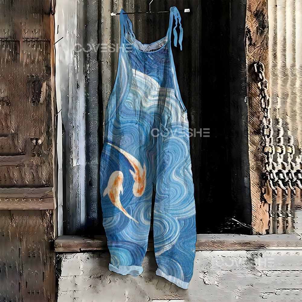 Women's Casual Wave Koi Printed Jumpsuit