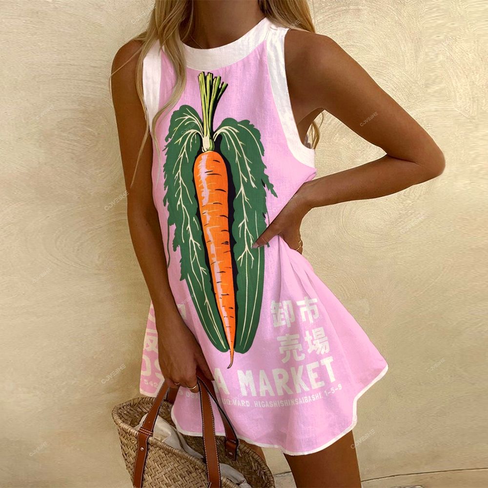 Women's Sleeveless Osaka Market Carrot Printed Dress