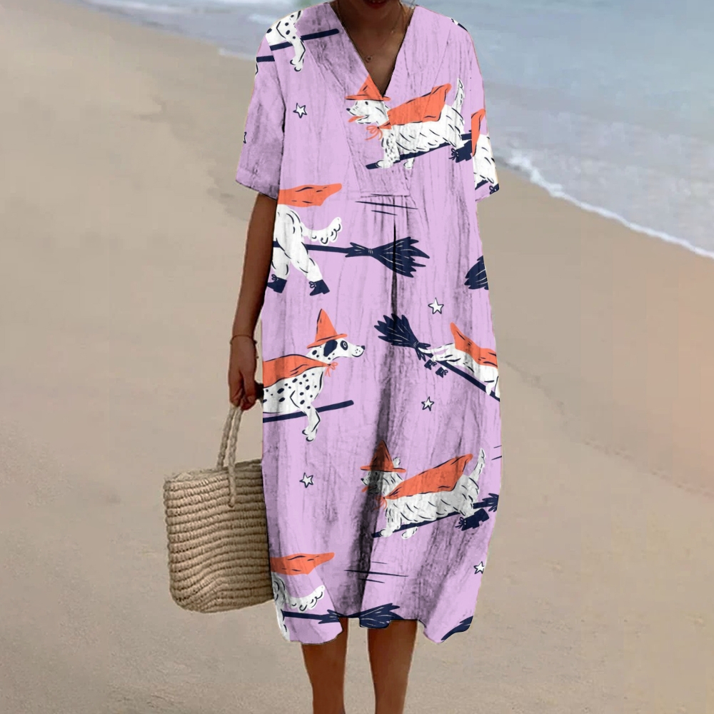 Women's Large Size Sardines Art Print Loose Elegant Casual Dress