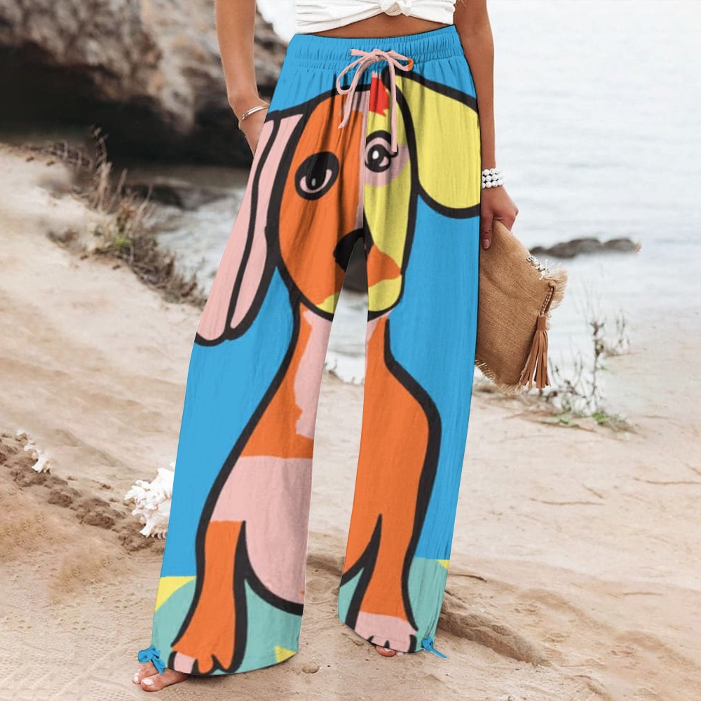 Women's Wide Leg Casual Colorful Art Dog Printed Pants