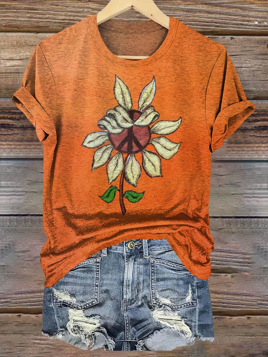 Women's Art Floral Hippie Sunflower Print Crew Neck T-Shirt