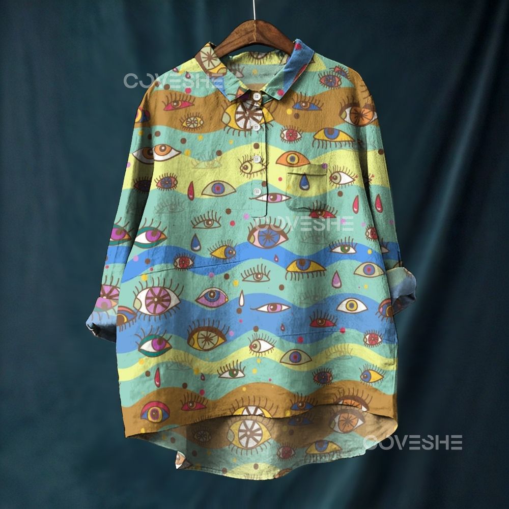 Women's Artistic Color Eyes Printed Casual Long Sleeve Shirt