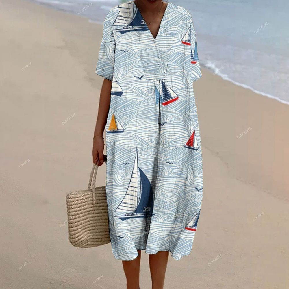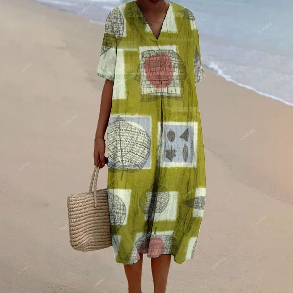 Women's Artistic Geometric Leaves Printed Flowy Dress
