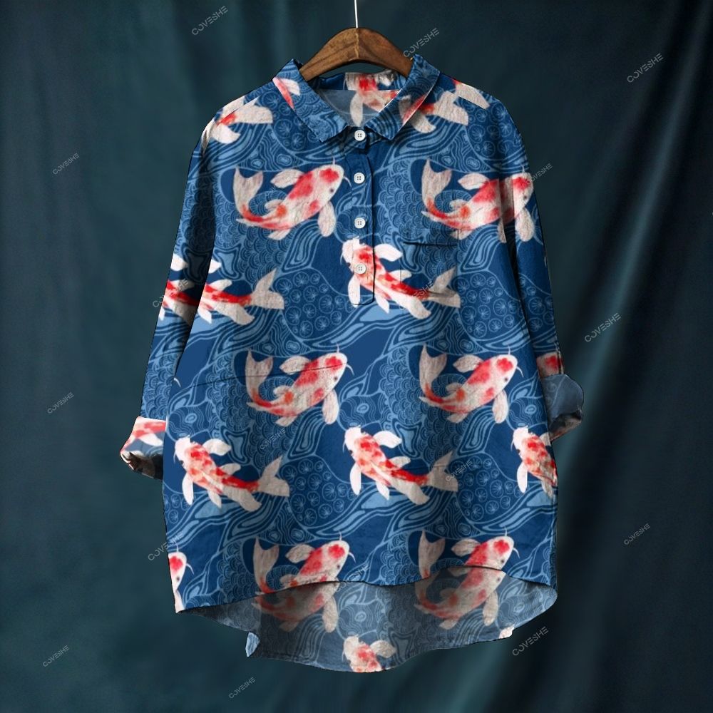 Women's Japanese Vintage Koi Printed Casual Long Sleeve Shirt