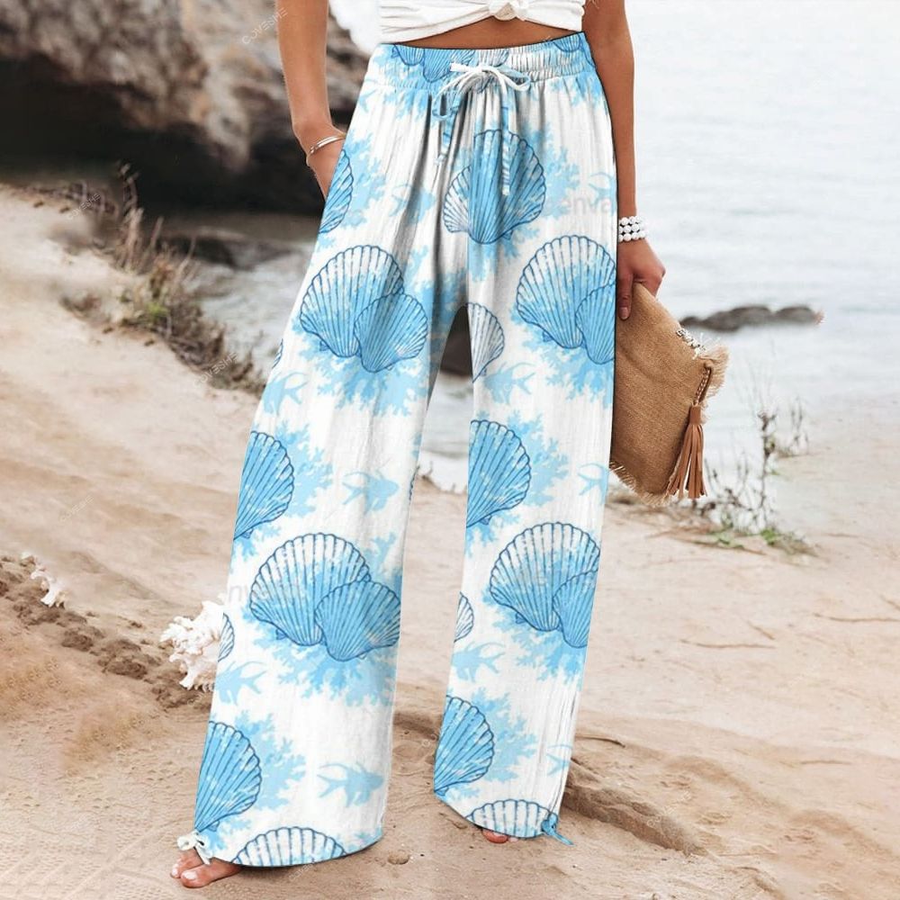 Women's Holiday Style Ocean Starfish Pattern Loose Casual Pants (With Pockets)
