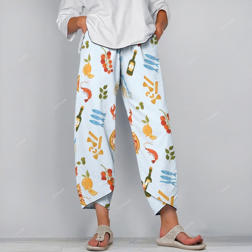 Women's Casual Colorful Cartoon Crab Lobster Printed Pants