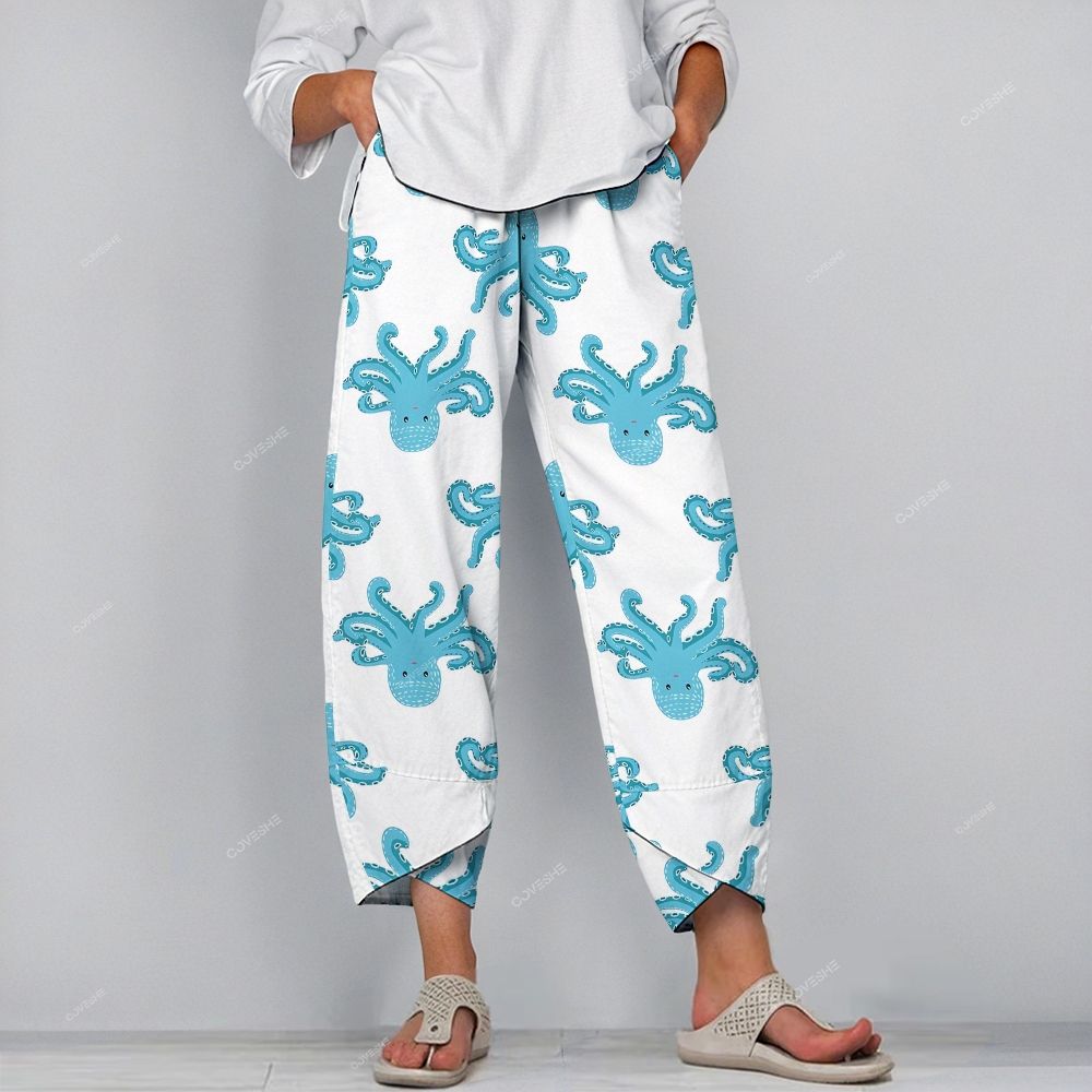 Women's Wide Leg Casual Cartoon Turtle Starfish Printed Pants