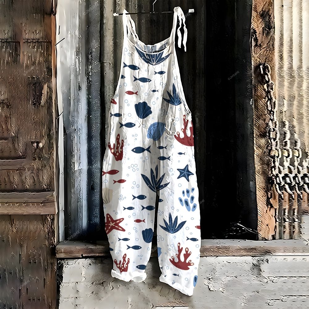 Women's Casual Coral Starfish Fish Printed Jumpsuit