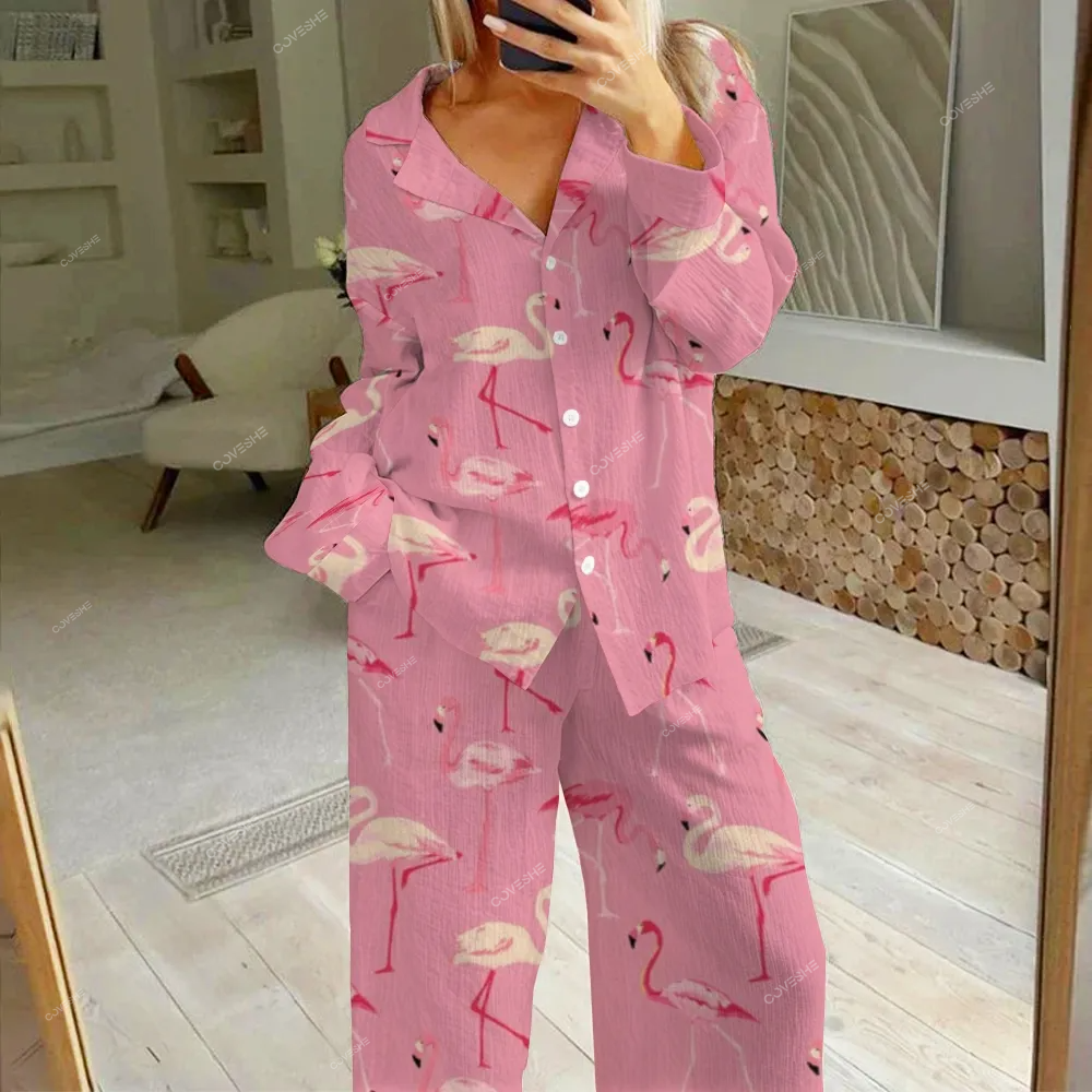 Women's Flamingo Printed Cotton Cardigan Homewear Set