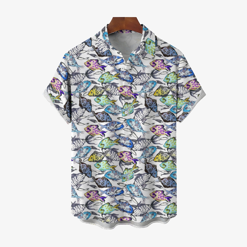 Men's Colorful Fish Print Hawaiian Casual Short Sleeve Shirt