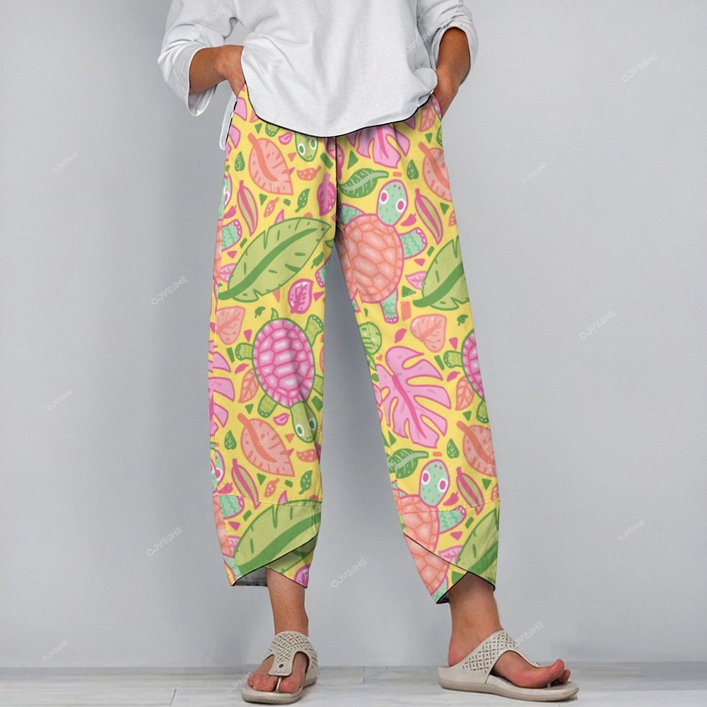 Women's Wide Leg Casual Vintage Flowers And Birds Printed Pants