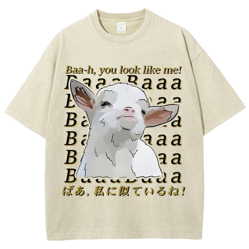Unisex Sheep Printed Washed Tee