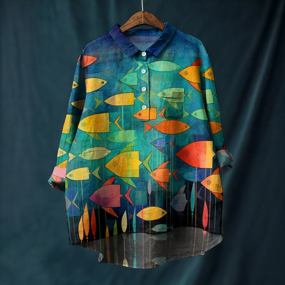 Women's Colorful Fish Printed Casual Long Sleeve Shirt