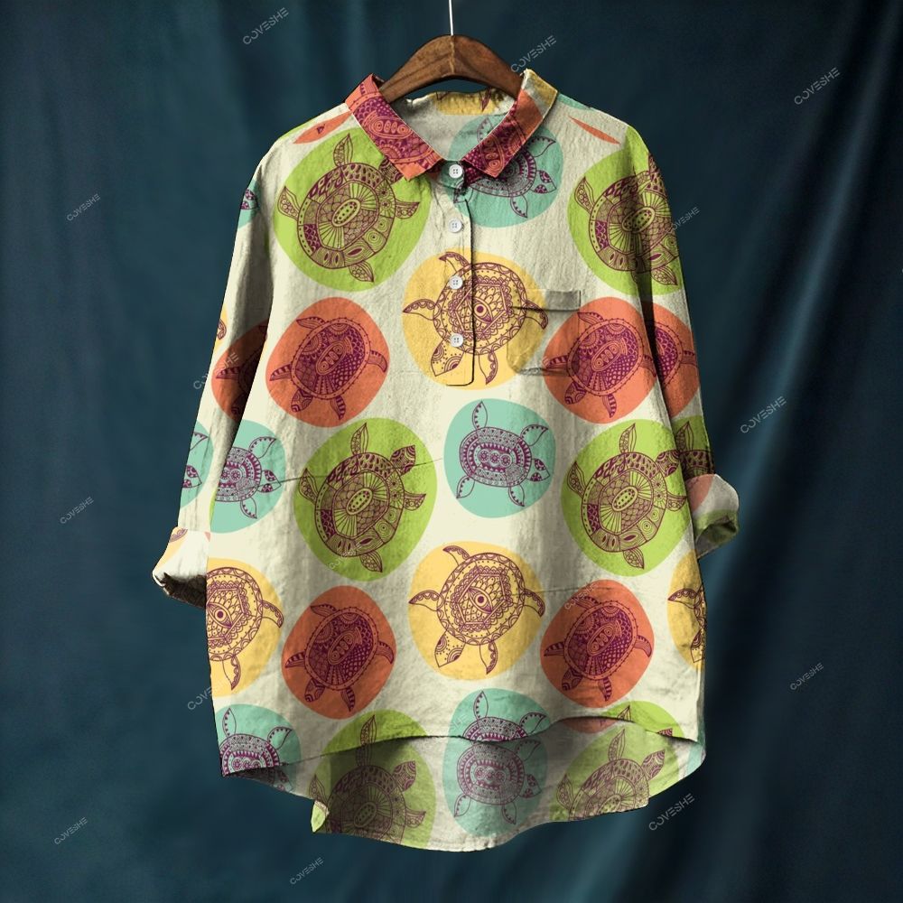 Women's Colorful Geometric Turtle Printed Casual Long Sleeve Shirt