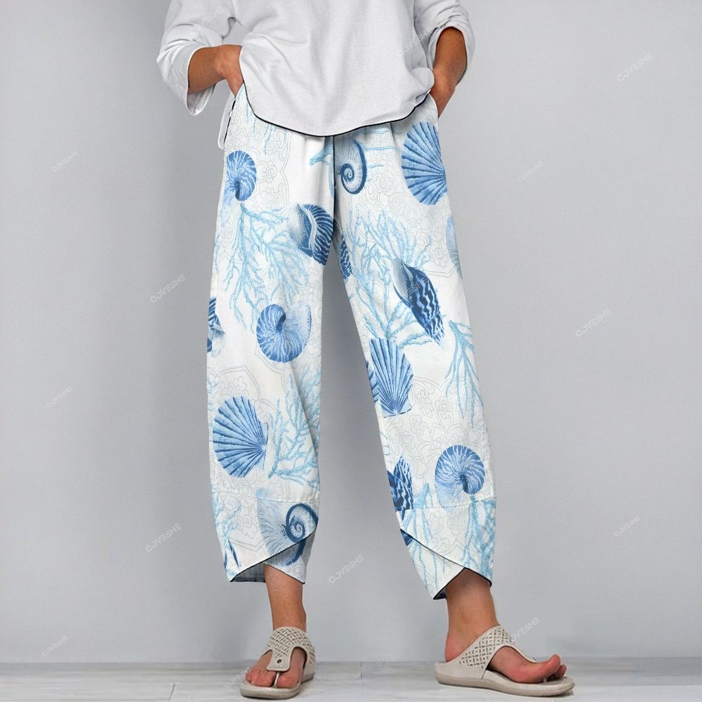 Women's Casual Coral Shell Printed Pants