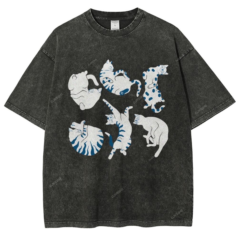 Unisex Cat Printed Washed Tee