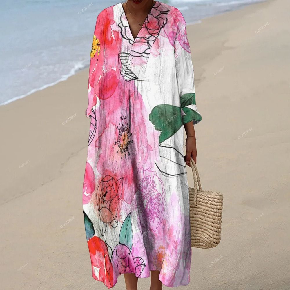 Women's Artistic Flowers Printed Maxi Dress