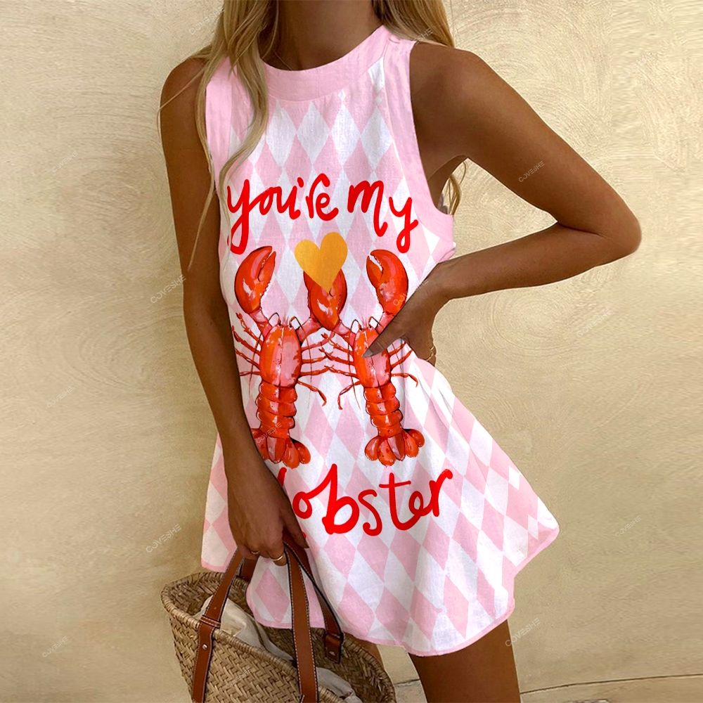 Women's Sleeveless You Are My Lobster Printed Dress