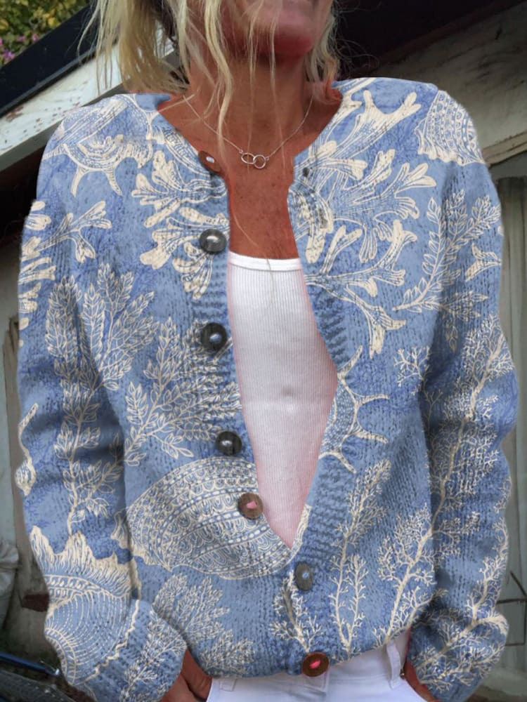 Undersea Plants and Shells Art Print Buttoned Cardigan Sweater