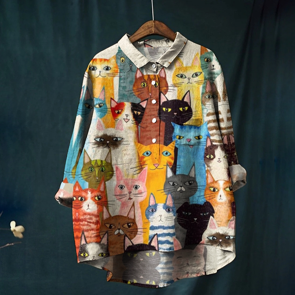 Women's Artistic Eyes Printed Casual Long Sleeve Shirt