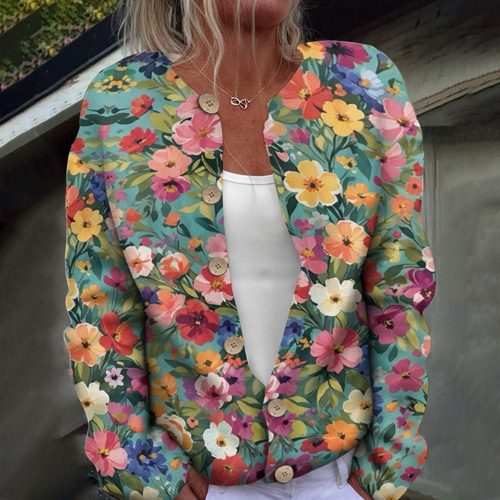 Women's Casual Vintage Flowers Printed Long Sleeve Hoodie