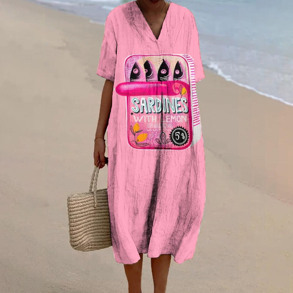 Women's Canned Sardines Print Flowy Dress