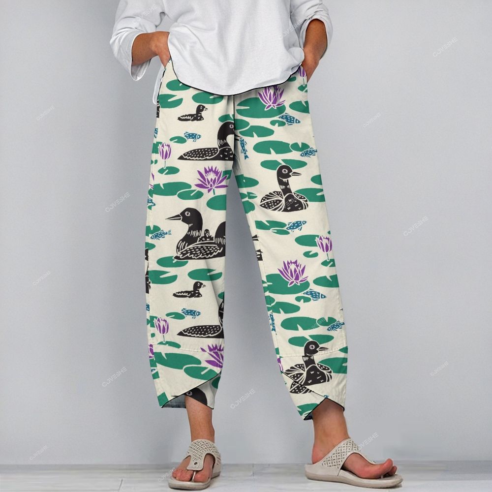 Women's Casual Duck Fish Printed Pants