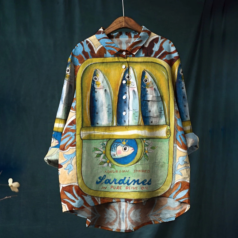 Women's Vintage Sardines Print Casual Shirt