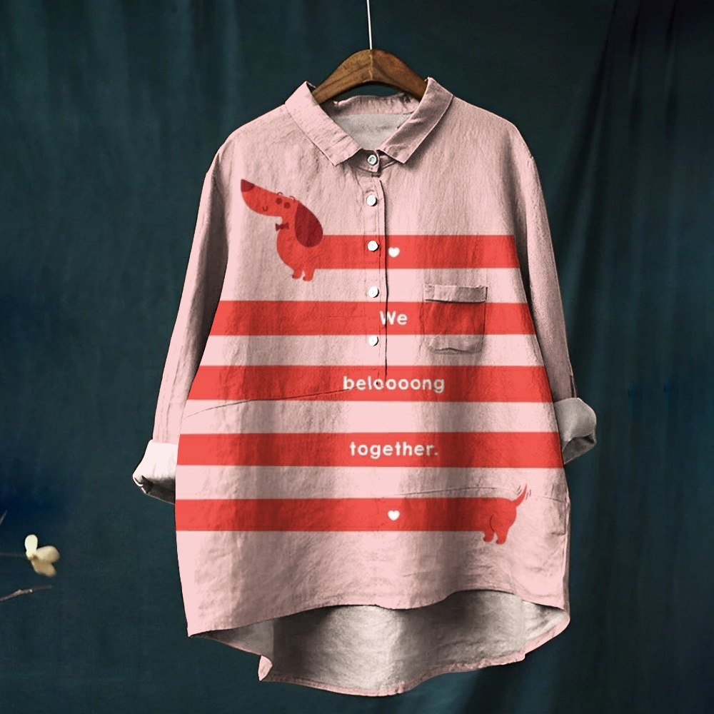 Women's Striped Dog Printed Casual Shirt