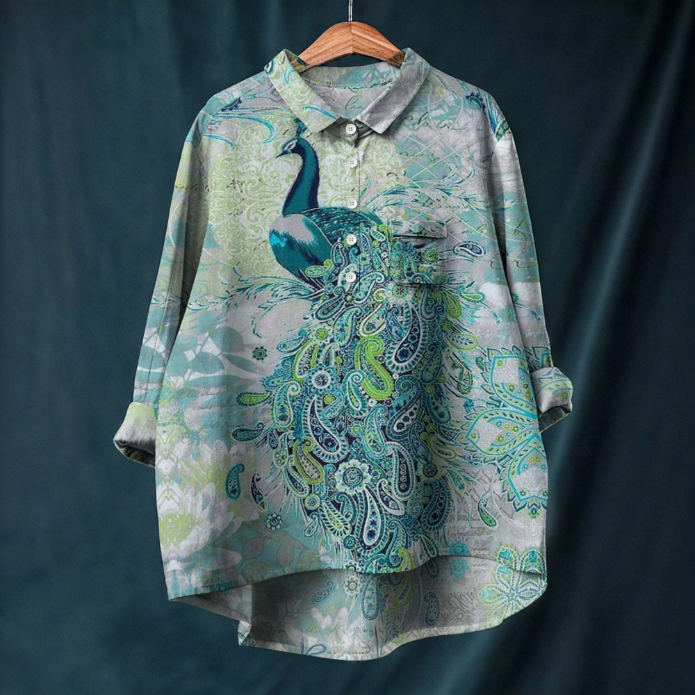 Women's Peacock Printed Long Sleeve Casual Shirt