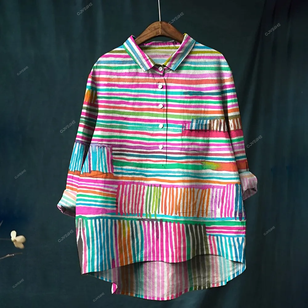 Women's Colorful Stripe Printed Casual Shirt