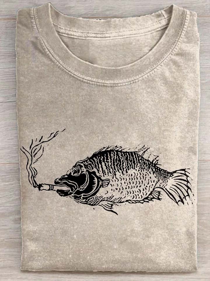 Women's Vintage Fish Printed Casual Long Sleeve Shirt