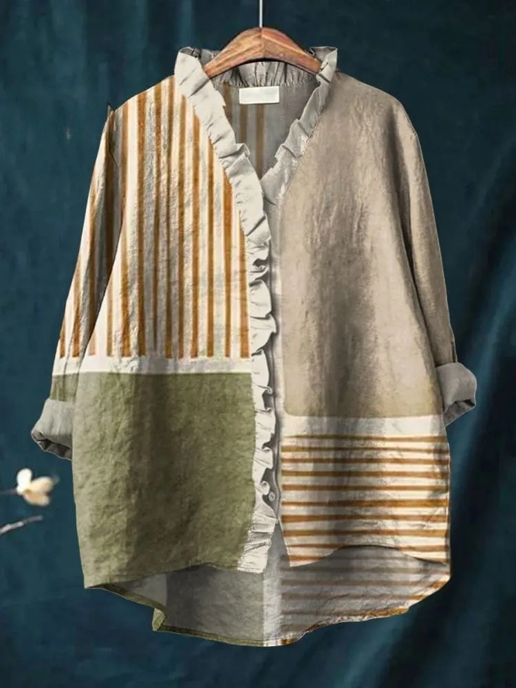 Women's Abstract Geometric Pattern Art Print Casual Ruffle Shirt