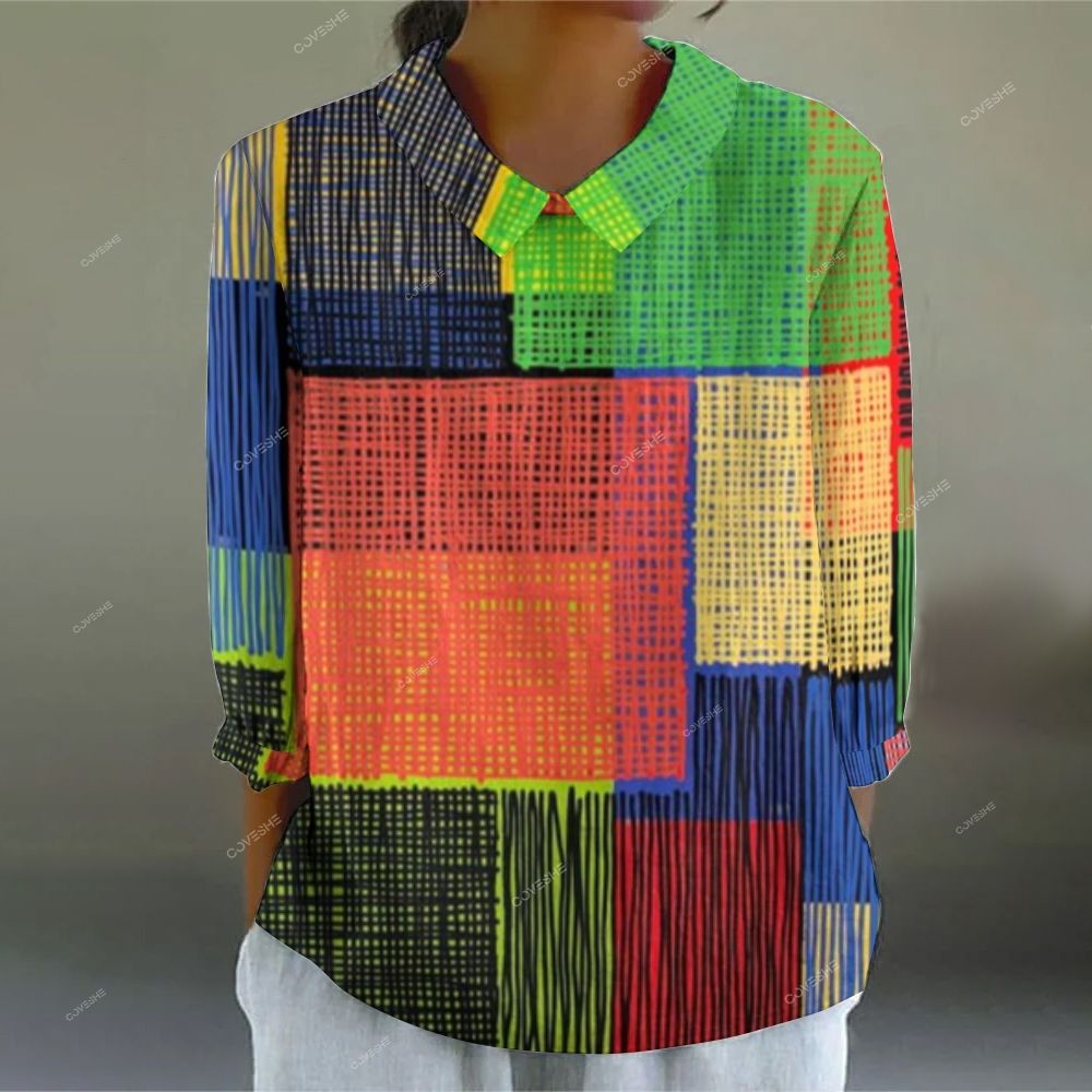 Women's Art Geometry Printed Casual Long Sleeve Shirt