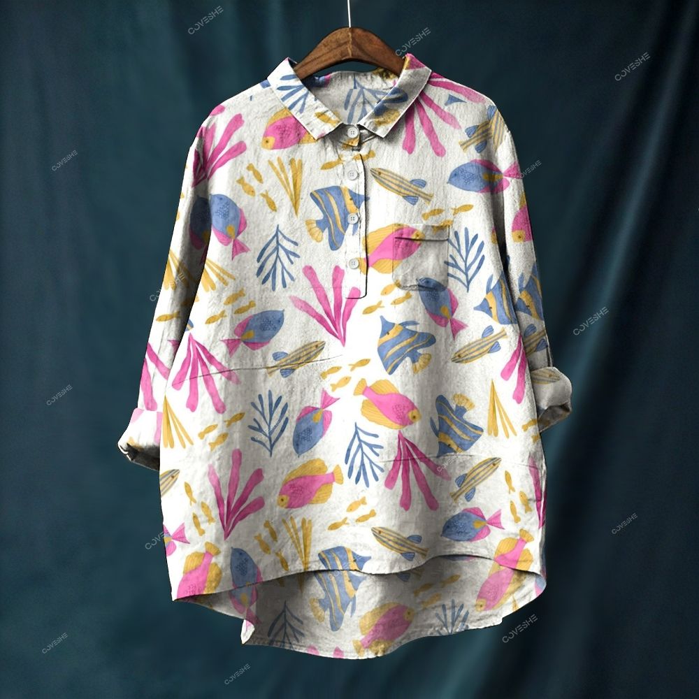 Women's Colorful Fish Printed Casual Long Sleeve Shirt