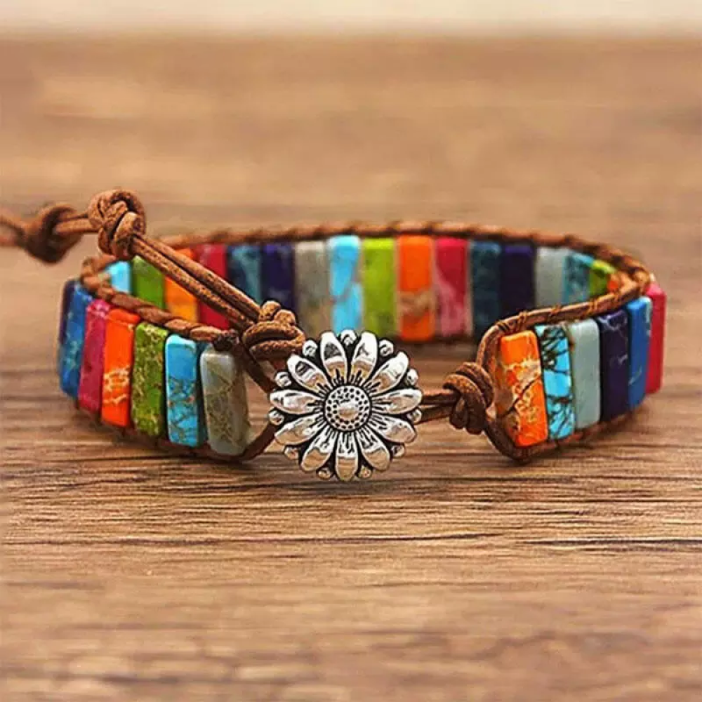 Sunflower Colorful Stone Beaded Wrap Bracelet