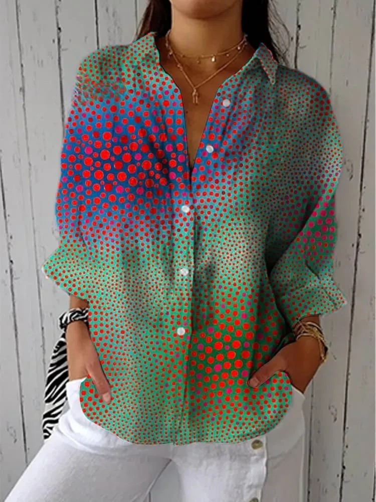 Women's Abstract Dot Pattern Art Print Casual V-neck Shirt