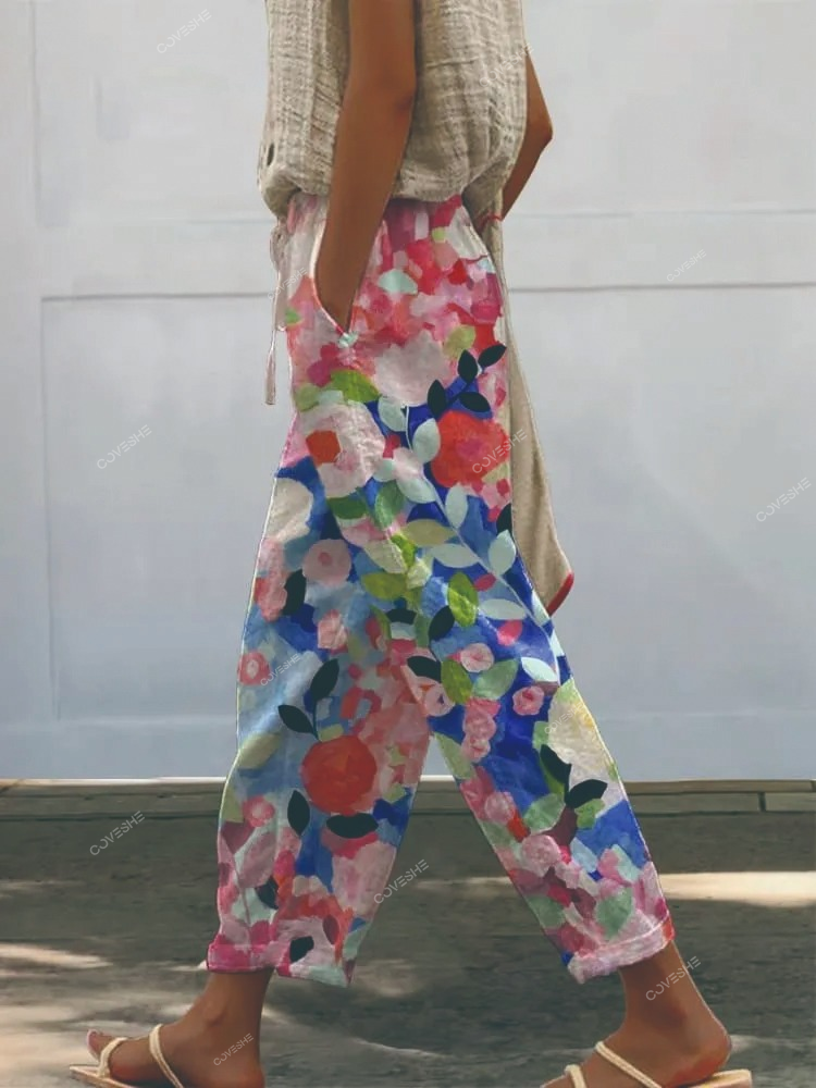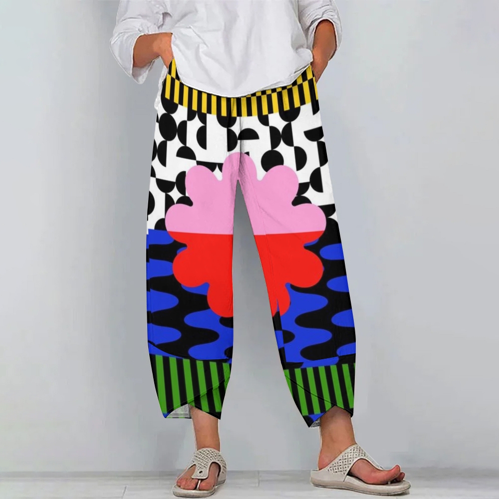 Women's Vintage Abstract Octopus Art Print Casual 100% Cotton Wide Leg Jumpsuit
